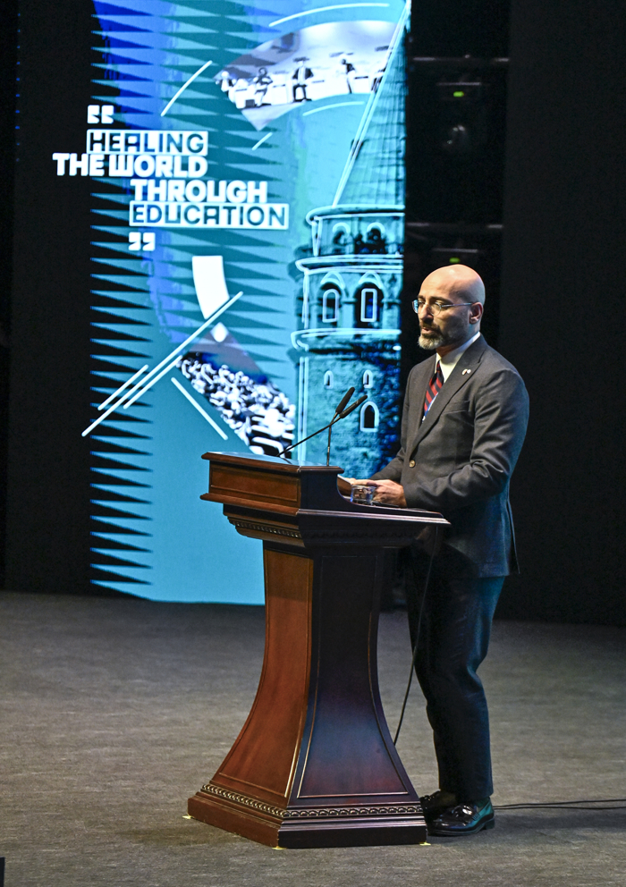 Vakfın 56 ülkede 500'ü aşkın eğitim kurumunda tüm dünyada iyi insanlar yetiştirerek dünya barışına gerçek ve elle tutulur katkı sağladığını, Maarif okullarının sıralarında oturan her öğrencinin dünyaya Yunus Emre'nin, Mevlana'nın, Hacı Bayram Veli'nin, Hacı Bektaş'ın ve cümle Anadolu büyüğünün gözlerinden bakmayı öğrendiğini belirtti.