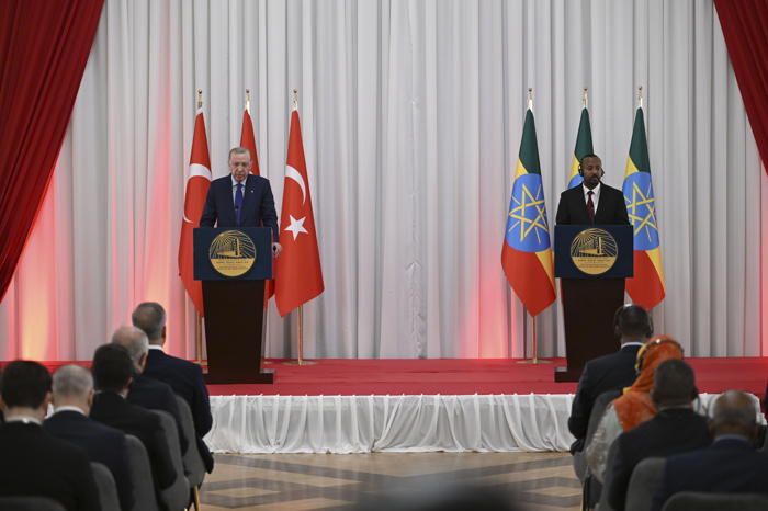 Cumhurbaşkanı Recep Tayyip Erdoğan, Addis Ababa'da Etiyopya Başbakanı Abiy Ahmed ile düzenlediği ortak basın toplantısında ticaret, yatırımlar ve Afrika Boynuzu'ndaki gelişmelere ilişkin dikkat çeken değerlendirmelerde bulundu. Türk müteahhitlik şirketlerinin Etiyopya'da 2,6 milyar dolar değerinde 15 projeye imza attığını kaydeden Cumhurbaşkanı Erdoğan, "Etiyopya'nın her daim yanındayız" mesajı verdi.