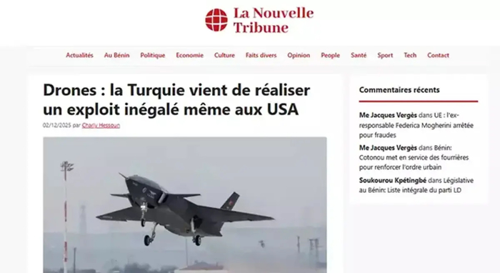 La Nouvelle Tribune, Türkiye'nin son 15 yılda savunma sanayinde yaşadığı köklü değişime de değinerek, "Bir dönem dışa bağımlı olan Ankara'nın bugün dünyanın en gelişmiş insansız hava araçlarını tasarlayan, üreten ve sahada etkin biçimde kullanan az sayıdaki ülkeden biri" haline geldiğini yazdı. Bayraktar TB2'nin Libya, Suriye, Karabağ ve Ukrayna'daki etkisi, Türkiye'yi küresel alanda öne çıkaran en önemli unsurlardan biri olarak gösterildi.