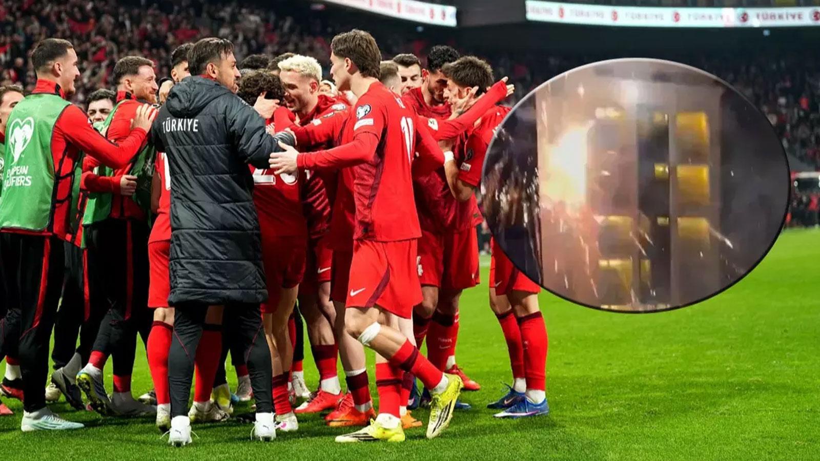 Havai fişekleri yan yatırarak otelin camları vuruldu. O anları gezi içerikleriyle bilinen ve maç için Kosova'da bulunan Youtuber Tolga Öztürk paylaştı. Gelişmelerin ardından olay yerine polis ekipleri sevk edildi.