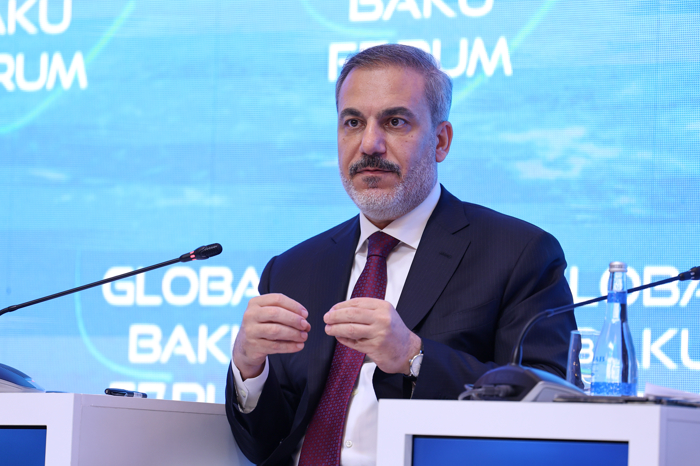 Bakan Fidan, Türkiye-Azerbaycan-Gürcistan Üçlü Dışişleri Bakanları 9. Toplantısı'na katılmak için geldiği Azerbaycan'ın başkenti Bakü'de, "Parçalanmış Dünyayı Onarmak (Fixing the Fractured World)" temasıyla düzenlenen 11. Global Bakü Forumu'nda katılımcılara hitap etti.