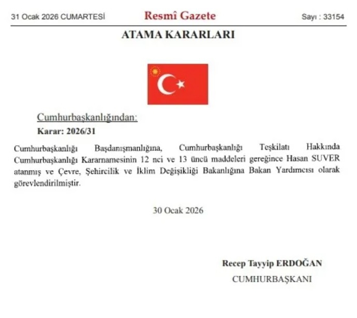 Cumhurbaşkanlığı Kararnamesi kapsamında Hasan Suver, Cumhurbaşkanlığı Başdanışmanlığı görevine atanırken, aynı zamanda Çevre, Şehircilik ve İklim Değişikliği Bakanlığı'nda Bakan Yardımcısı olarak görevlendirildi. Karar Resmi Gazete'de yayımlanarak yürürlüğe girdi.