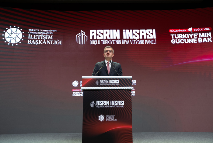 Cumhurbaşkanlığı İletişim Başkanı Burhanettin Duran, İletişim Başkanlığında düzenlenen "Asrın İnşası Güçlü Türkiye'nin İhya Vizyonu Paneli"nde yaptığı konuşmada, bugün, yaşadıkları o büyük imtihanın üzerinden geçen 3 yılın muhasebesini yapmak, afetlere karşı hafızaları diri tutmak ve Türkiye'nin geleceğine dair ortak perspektiflerini paylaşmak üzere bir araya geldiklerini belirtti.