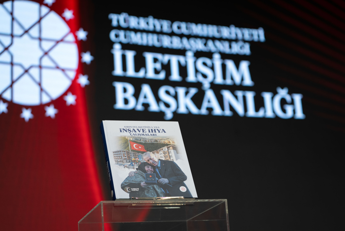 "Takdim yazısını, Cumhurbaşkanımız Sayın Recep Tayyip Erdoğan'ın kaleme aldığı eserimizde, asrın felaketine dair ilk andan itibaren yürütülen çalışmalar yer almaktadır. Kitabın içeriğinde, dünyadaki büyük afetler ve 6 Şubat depremlerinin küresel etkileri değerlendirildi. Afete yönelik detaylı veriler, infografikler şeklinde de paylaşıldı. Bütün bunların yanı sıra afet sonrası yapılan çalışmalar, sağlık, eğitim, ekonomi, sosyal hizmetler ve iletişim gibi birçok başlık altında bütüncül bir bakış açısıyla değerlendirildi. Bu yönüyle kitabımız, dayanışma ruhuyla yürüttüğümüz inşa ve ihya tecrübesini kayıt altına alan ve gelecek nesillere de bunu anlatan bir başvuru eseri olmuştur. Öte yandan, panellerimizin başlıklarından birisi olan 'Afet Haberciliği, Haberi Felakete Dönüştürmeden Önleme Projesi'ne de değinmek isterim. Selçuk Üniversitesinin koordinasyonunda yürütülen ve kurumumuzun da ortaklarından olduğu bu proje kapsamında iletişim fakülteleri için uluslararası düzeyde geçerliliği olan afet haberciliği ders müfredatı ve medya profesyonelleri için eğitim rehberleri geliştirildi. Buradaki temel amaç, Allah korusun ama afetlerin yeniden geldiğinde habercilerin ne yapacaklarını şimdiden bilmeleri gerektiğiydi. Bu çalışmaların ülkemizde ve dünyada afet iletişimi konusunda farkındalığın artmasına ve bu meselede etiğin güçlenmesine önemli katkılar sağlayacağı görüşündeyim."