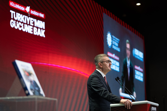 "Bu süreç, Sayın Cumhurbaşkanımızın her fırsatta altını çizdiği gibi hiçbir vatandaşı sahipsiz bırakmama anlayışının ve kimsesizlerin kimsesi olma sorumluluğunun hayata geçirilmesidir. 455 bin konutun vatandaşlarımıza teslim edilmesi bunun en önemli tezahürlerinden birisidir. İnşa ve ihya çalışmalarıyla depremde ağır yara alan tüm şehirlerimiz, bugün yepyeni standartlara, çehrelere kavuşmuştur. Tüm bunlar, fiziksel bir yapılanmayla sınırlı değildir. Sosyal adaletin, ekonomik direncin ve toplumsal iyileşmenin de yeniden tesisini ifade etmektedir. Çevre, Şehircilik ve İklim Değişikliği Bakanımız Sayın Murat Kurum, bölgede yapılan çalışmaları yakinen bilen, bu konuda çok önemli görevler üstlenen birisi olarak size kapsamlı şekilde meseleyi anlatacaktır."