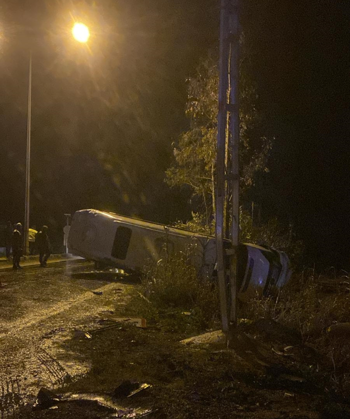 İşçileri taşıyan minibüs devrildi: 13 kişi yaralandı