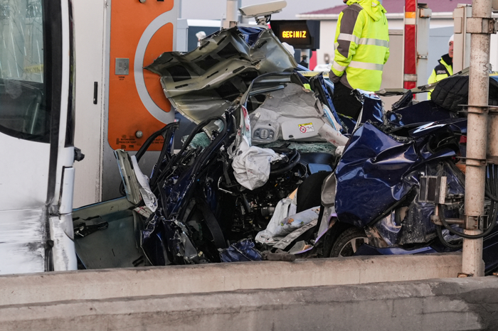 Gişelerde kaza nedeniyle yoğunluk yaşanırken ekipler olay yerinde çalışma başlattı.