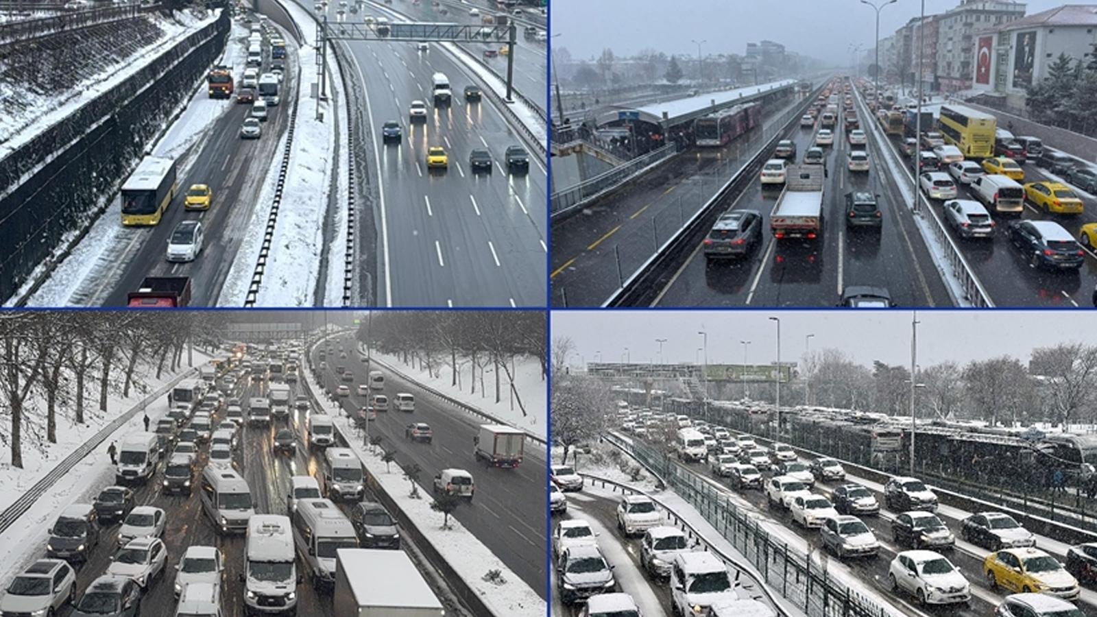 İstanbul'da haftanın ilk iş gününde kar yağışının da etkisiyle trafik yoğunluğu, sabah saatlerinde yüzde 81'e çıktı.
