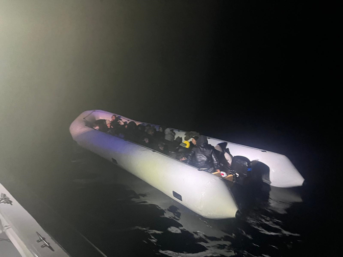 İlçe açıklarında lastik botta bir grup düzensiz göçmen olduğu bilgisinin alınması üzerine bölgeye Sahil Güvenlik botu yönlendirildi.