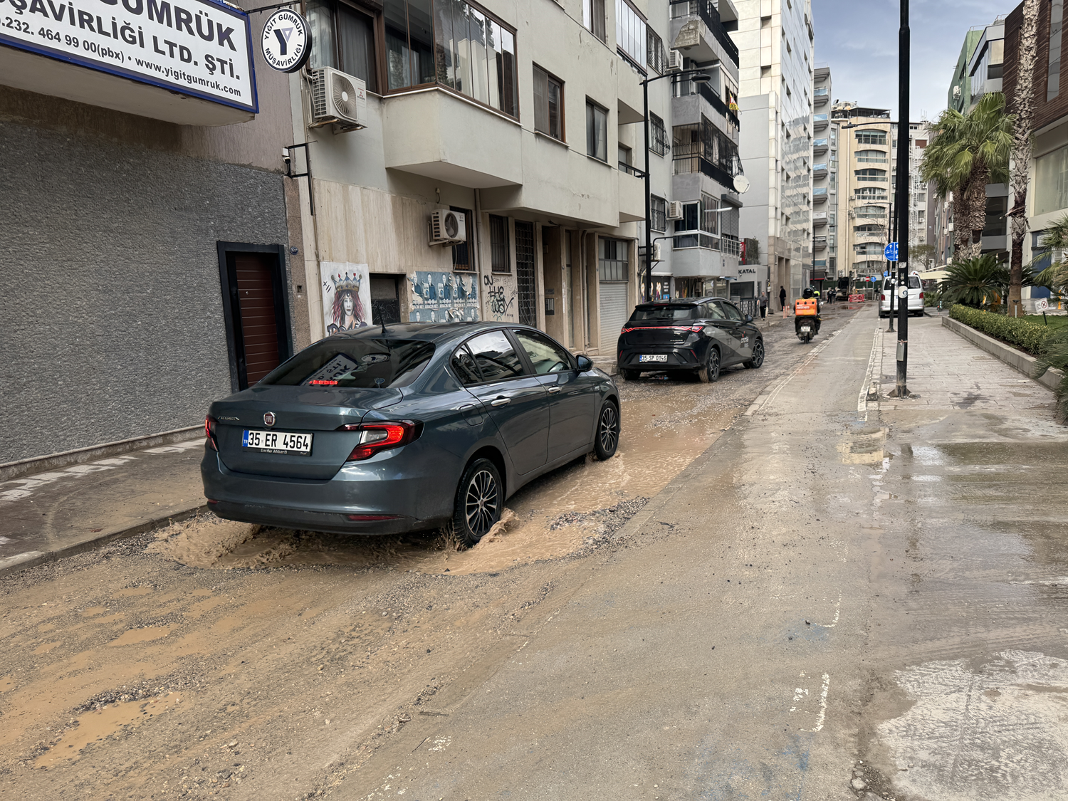 Son günlerde etkili olan yağışlar nedeniyle çalışmaların sürdüğü bölgelerde oluşan çukur ve boşluklarda su birikintileri meydana geldi. Sürücü ve yayalar, su dolu çukurlar ve çamurlu alanlar nedeniyle ilerlemekte güçlük çekti.