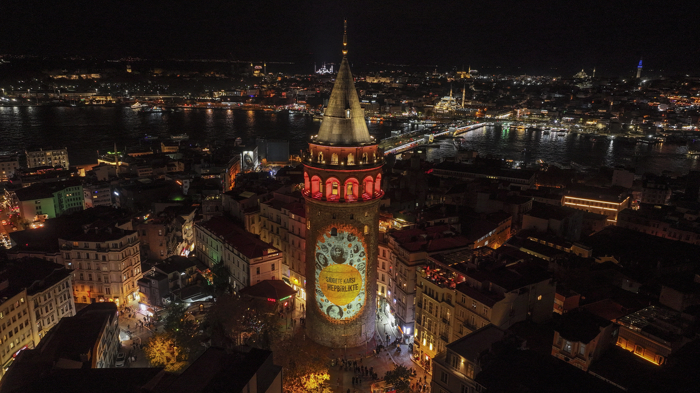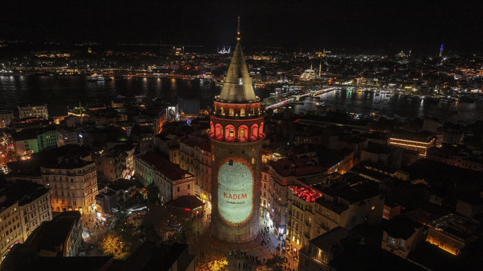 KADEM, farkındalık çalışmaları kapsamında Galata Kulesi'nde de video mapping gösterisi düzenledi.