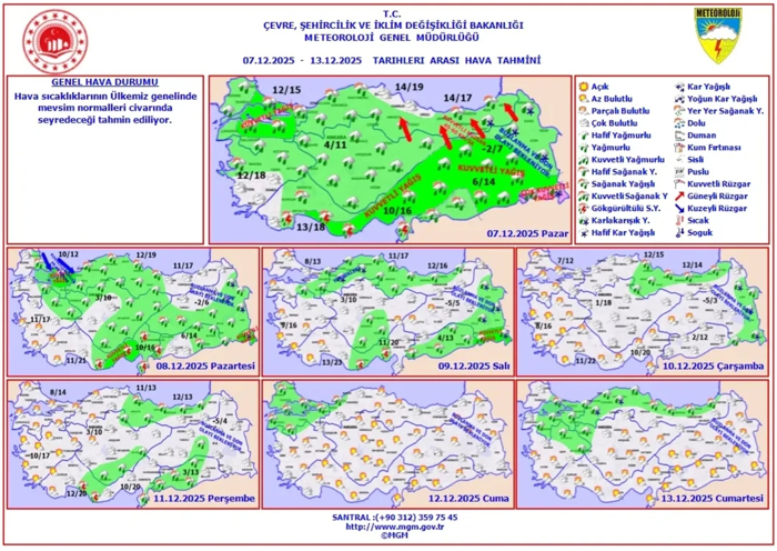 İşte, 7 Aralık 2025 Pazar yani bugün için Meteorolojiden 24 il için sarı kodlu uyarıyla birlikte detaylı hava durumu raporu karşınızda...