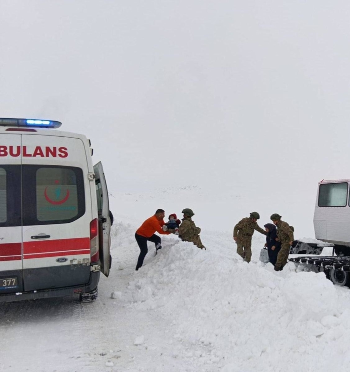 Kars'ta karda kalan hasta çocuklar için Mehmetçik ve ekipler seferber oldu