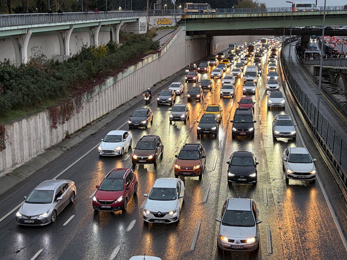 Megakentte haftanın ilk iş günü yağışlı havanın da etkisiyle trafik yoğunluğu yüzde 76'ya çıktı