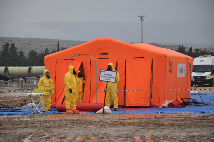 Kontrollerin ardından radyasyon ölçümünden geçirilen kişilerin, dezenfeksiyon işlemi sonrası geçici barınma alanlarına nakledilmesiyle tatbikat sona erdi.