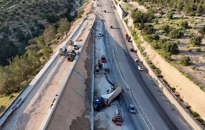 Ulaşımın tek şeritten ve kontrollü sağlandığı kaza bölgesindeki çalışmalar sürüyor.