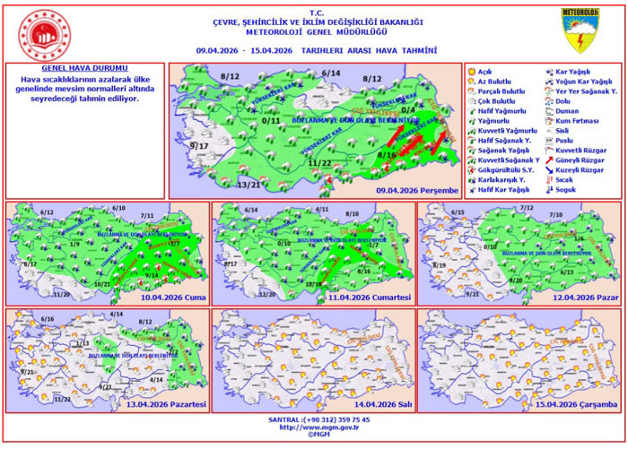 METEOROLOJİDEN İL İL HAVA DURUMU TAHMİNLERİ (9 NİSAN PERŞEMBE)