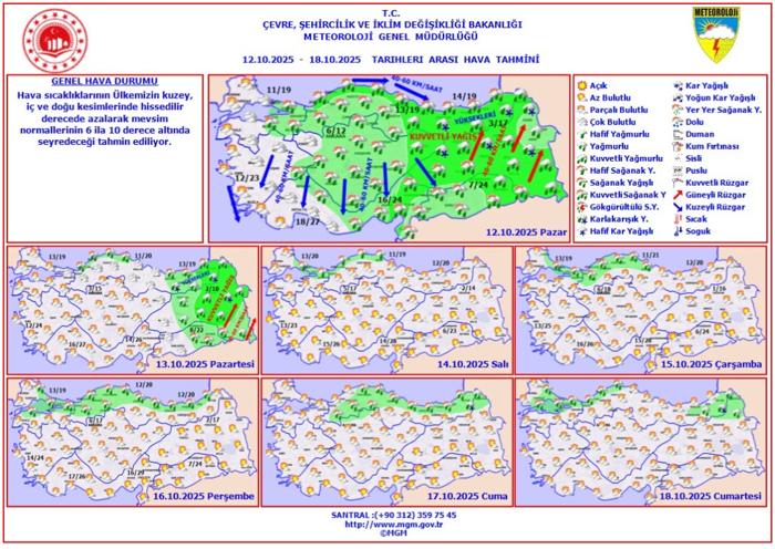 13 EKİM 2025 PAZAR İÇİN METEOROLOJİDEN UYARILAR