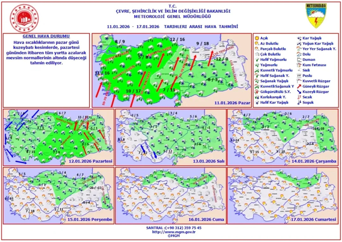 İşte, Meteorolojiden 11 Ocak 2026 Pazar için detaylı hava durumu tahminleri karşınızda...
