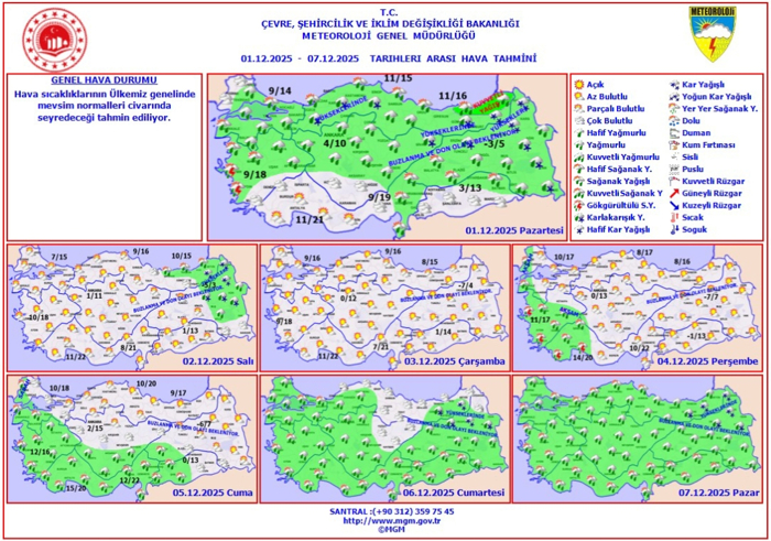 Meteorolojiye göre 1 Aralık 2025 Pazartesi günü hava tahmin raporu detayda karşınızda...