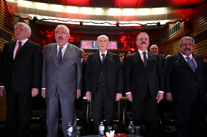 Bahçeli'nin salona girmesinin ardından saygı duruşu ve İstiklal Marşı okunmasıyla başlayan programda MHP'ye özel hazırlanan kısa film gösterimi gerçekleştirildi.