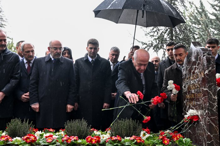 MHP lideri Bahçeli, Bayram namazı sonrası MHP kurucu lideri merhum Alparslan Türkeş'in kabrini ziyaret etti. Bahçeli ve beraberindeki partililer Türkeş'in kabrine karanfil bırakarak dua etti, Ziyaretin ardından gazetecilere açıklamalarda bulunan Bahçeli, şunları dedi: