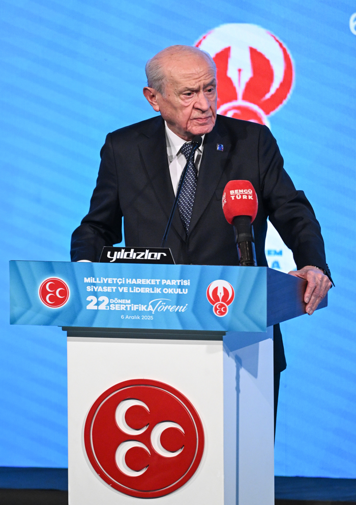 Bahçeli, MHP Genel Merkezi'nde düzenlenen, Siyaset ve Liderlik Okulu 22. Dönem Sertifika Töreni'ne katıldı.
