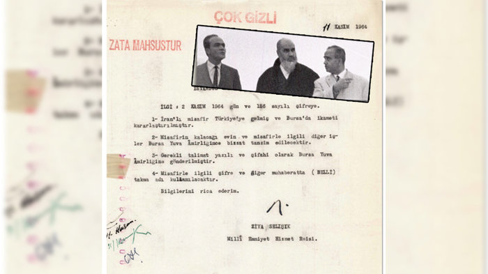 Milli İstihbarat Teşkilatı (MİT), İran devriminin lideri Ayetullah Humeyni'nin Türkiye'deki ikameti kapsamında "çok gizli" ibaresiyle gönderilen 11 Kasım 1964 tarihli yazıyı paylaştı.