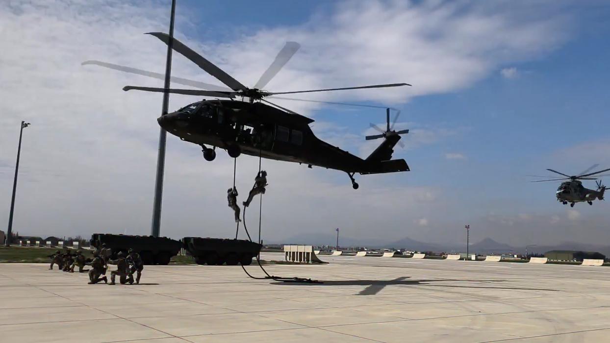 Milli Savunma Bakanlığı, Konya'da düzenlenen Uluslararası Anadolu Ankası-2026 Tatbikatı'nda helikopterle bölgeye sızma, halatla hızlı iniş ve meskun mahalde terörist grubun etkisiz hale getirilmesi anlarını paylaştı. Yapılan açıklamada, tatbikat kapsamında terörist elebaşının sağ ele geçirilmesiyle operasyonun başarıyla sonuçlandığı belirtildi.