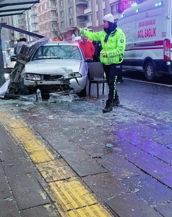 Çankaya ilçesi Fakülteler Mahallesi'nde Samet Gür'ün kullandığı otomobil, henüz belirlenemeyen nedenle kontrolden çıkarak otobüs durağına çarptı.