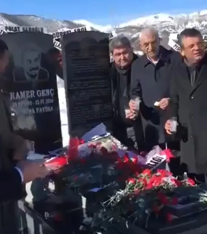 Hayatını kaybeden Tunceli eski milletvekili Kamer Genç'in mezarı başında CHP Genel Başkanı Özgür Özel ile CHP Malatya Milletvekili Veli Ağbaba'nın rakı içtiği skandal görüntüler paylaşıldı.