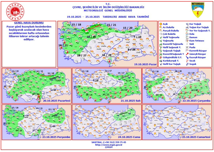 İşte, 19 Ekim 2025 Pazar (bugün) için Meteorolojiden hava durumu tahminleri detaylıca karşınızda...
