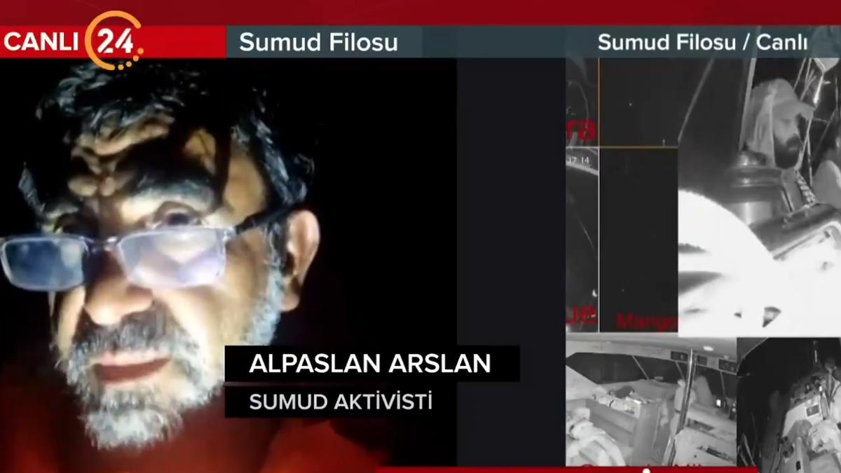 Türk aktivist Alparslan Arslan 24 TV canlı yayınında yaptığı açıklamada, 'Gemimize müdahale var. Ana teknelerimizle irtibat koptuğu için bilgi akışı sağlayamıyoruz. Amaçları zaten bu. Gazze'ye 70 mil yakınlıktayız' dedi.