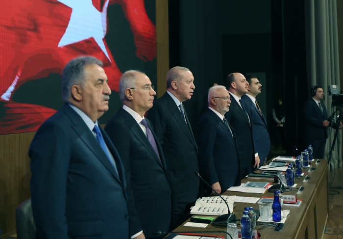 Sorunlara çözüm bulmak, dertlere derman olmak adına bütün enerjilerini, gayretlerini, birikimlerini, tecrübelerini, yüreklerini ortaya koyduklarını ifade eden Erdoğan, liyakatli ve tecrübeli kadroların riyasetinde Türkiye'nin büyüdüğünü, güçlendiğini, küresel bir aktör olma hedefine sağlam adımlarla ilerlediğini belirtti.