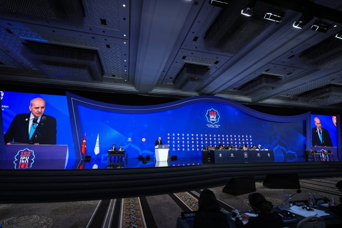 Parlamentolar Arası Birlik'in (PAB), "Gelecek Nesiller İçin Umudu Yeşertmek, Barışı Sağlamak ve Adaleti Temin Etmek" temalı 152'nci Genel Kurulu, TBMM Başkanı Kurtulmuş'un başkanlığında müzakerelerine başladı.