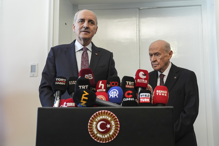 Kurtulmuş'a, açıklamaları sırasında MHP Genel Başkanı Bahçeli de eşlik etti.