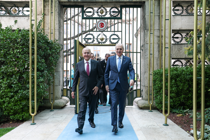 TBMM Başkanı Kurtulmuş, görüşmede, Barham Salih'i yeni görevinden dolayı tebrik ederek, kendisini TBMM'de ağırlamaktan büyük bir memnuniyet duyduğunu söyledi.