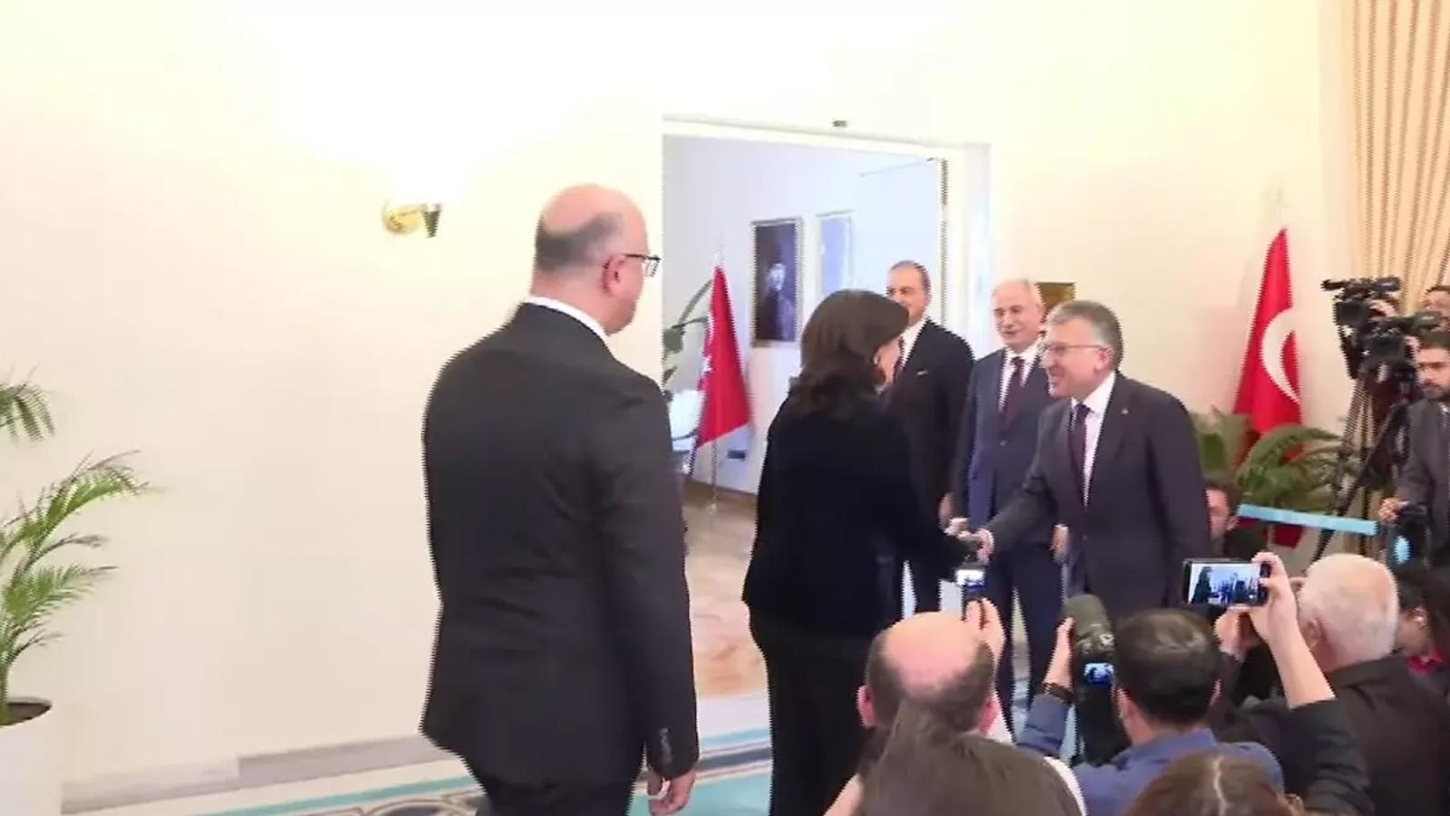 AK Parti heyeti DEM Parti heyetini kapıda karşıladı. DEM Parti heyetinde ise TBMM Başkanvekili Pervin Buldan, Şanlıurfa Milletvekili Mithat Sancar ve Özgür Faik Erol bulunuyor.