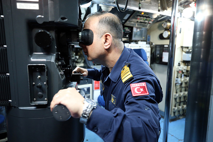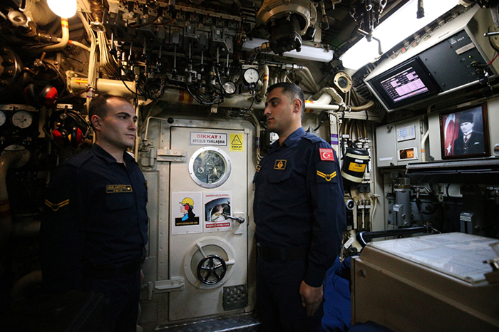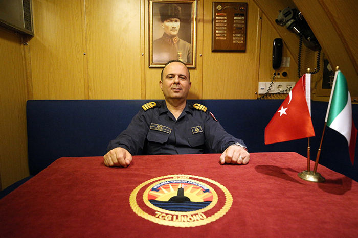 Binbaşı Turan, "S360" borda numaralı TCG 1. İnönü denizaltısının, Türk donanmasında 2007'den bu yana hizmette olduğu ve yaklaşık 45 personelin görev yaptığı bilgisini verdi.