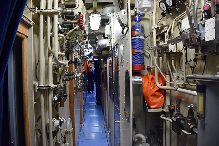 TCG 1. İnönü Komutanı Deniz Albay İsmail Koç ve 2. Komutan Binbaşı Orkun Turan, gazetecileri karşılarken denizaltının bazı bölümlerini gezdirdi.