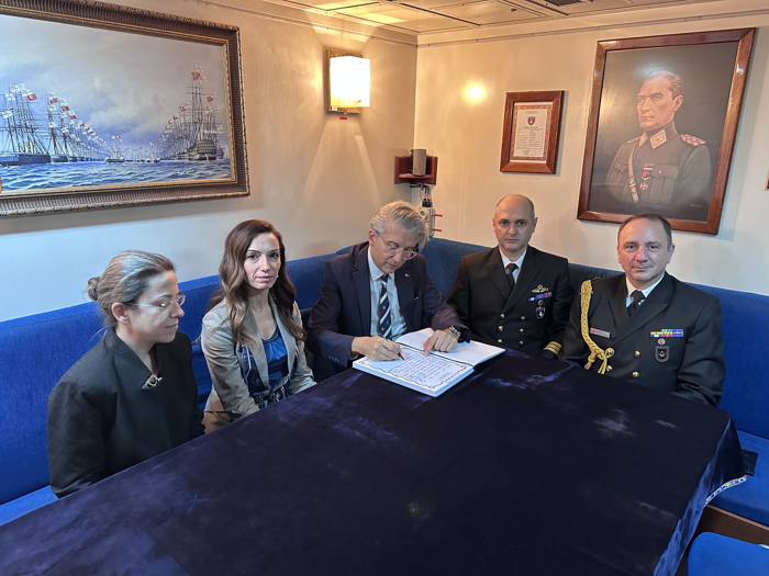 Büyükelçi Erciyes ve Başkonsolos Işıl Işık Civelik gemi anı defterini imzaladı.
