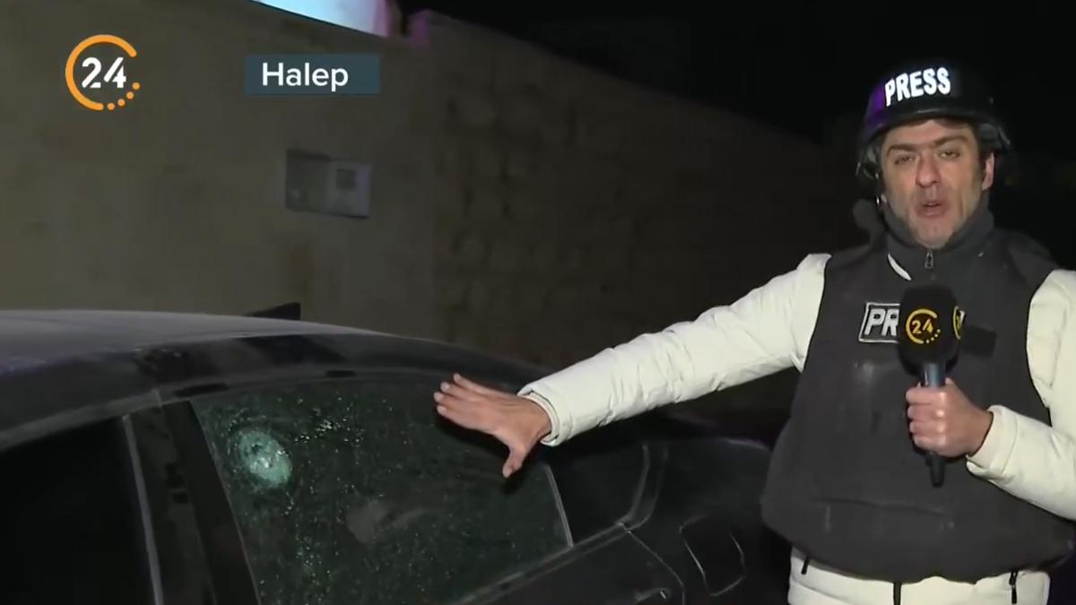 Suriye ordusunun Halep'te terör örgütü PKK/YPG'ye yönelik operasyonları sürerken, çatışma hattında görev yapan 24 TV ekibi YPG/SDG'nin havan saldırısına maruz kaldı. Saldırıda basın aracı hasar görürken, ekip saldırıdan yara almadan kurtuldu.