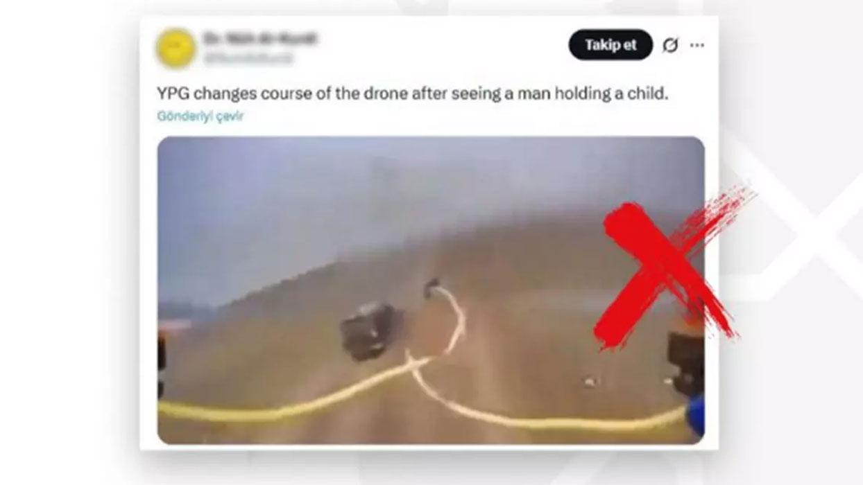 "Suriye'de YPG'li teröristlerin kucağında çocuk bulunan bir kişiyi gördükten sonra insansız hava aracının rotasını değiştirdiği yönündeki paylaşımlar, dezenformasyon içermektedir. Söz konusu paylaşımlardaki görüntüler Suriye'de değil Rusya-Ukrayna Savaşı esnasında kayda alınmıştır. Görüntülerin YPG'li teröristlerle ilişkilendirilmesi, terör unsurlarını masum göstermeye yönelik bir manipülasyon faaliyetidir."