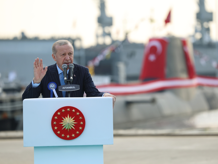 Deniz Platformlarımızın Hizmete Giriş, Bayrak Çekme ve İlk Sac Kesim Töreni'nde açıklamalarda bulunan Cumhurbaşkanı Erdoğan, 'Bugün Türk donanmasının gurur günü. Ülkemizin tersanelerine güvenmekte haklıyız. Savunmada başarı ancak bütüncül bir stratejiyle elde edilir, havada güçlü olmadan, denizde etkin olmadan karada caydırıcı olamazsınız, hamdolsun biz tüm bu alanlarda çok güçlü bir varlık gösteriyoruz.' ifadelerini kullandı.