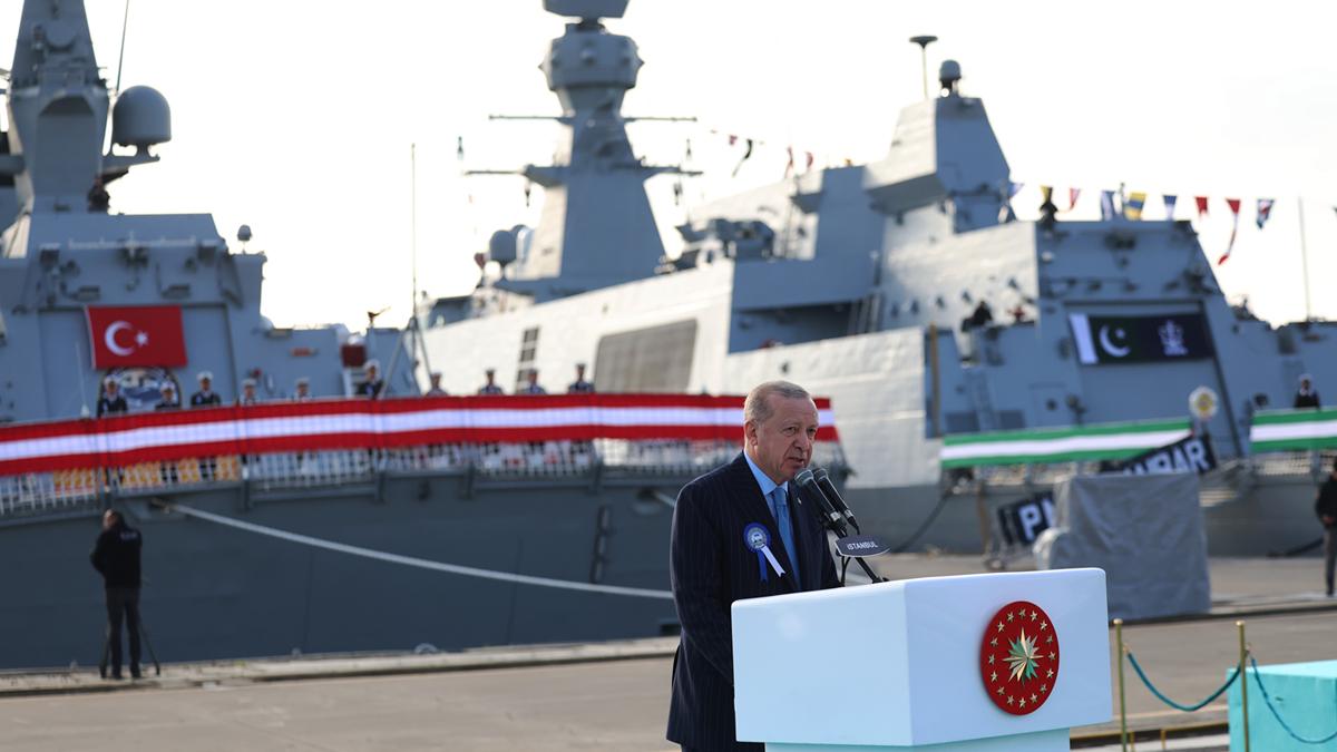 Bu hedefe doğru sağlam adımlarla ilerlediklerine dikkati çeken Erdoğan, "Şunu da burada büyük bir memnuniyetle ifade etmek isterim; Dünyada kendi savaş gemisini geliştirip denize indiren 10 ülkeden biri Türkiye'dir." ifadelerini kullandı.