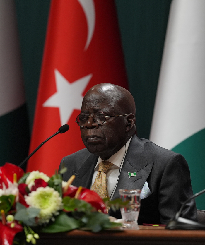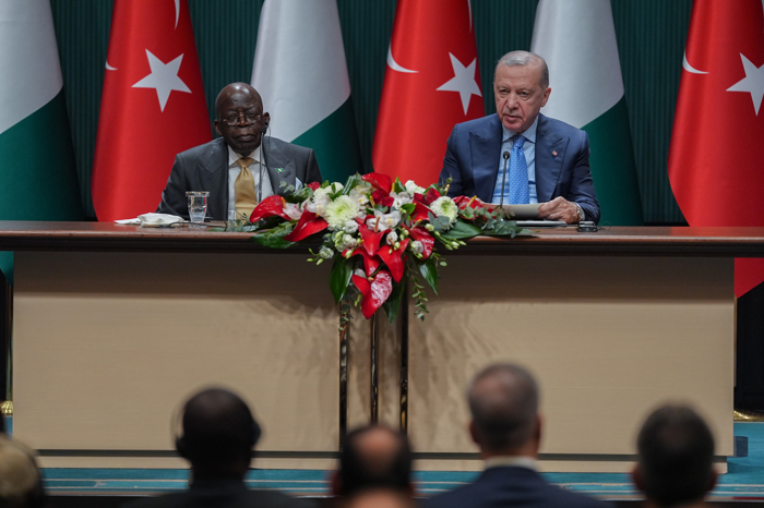 Türkiye'yi ziyaret eden Nijerya Cumhurbaşkanı Tinubu, Cumhurbaşkanı Recep Tayyip Erdoğan ile Cumhurbaşkanlığı Külliyesi'nde görüşmesinin ardından düzenlenen ortak basın toplantısında konuştu.