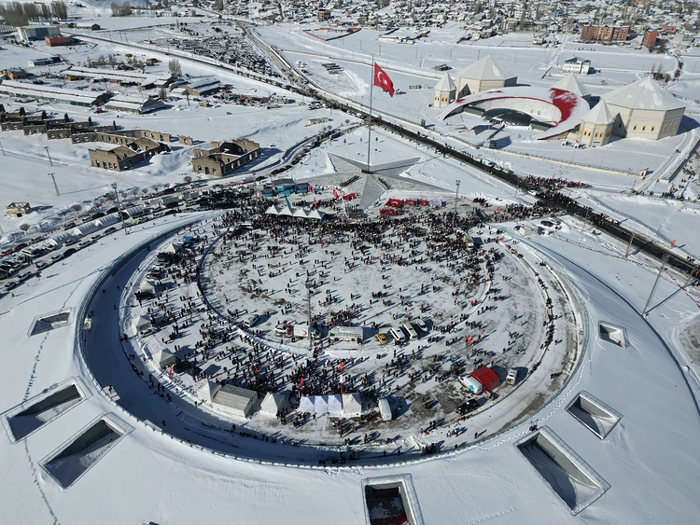 Kent merkeziyle Sarıkamış ilçesinden otobüslerle zirveye ulaşan katılımcılar, Türk bayraklarıyla yürüyerek toplanma alanına geldi. Vatandaşlar, Kızılçubuk bölgesinde şehitler anısına yapılan kardan heykellerin önünde fotoğraf çektirdi.