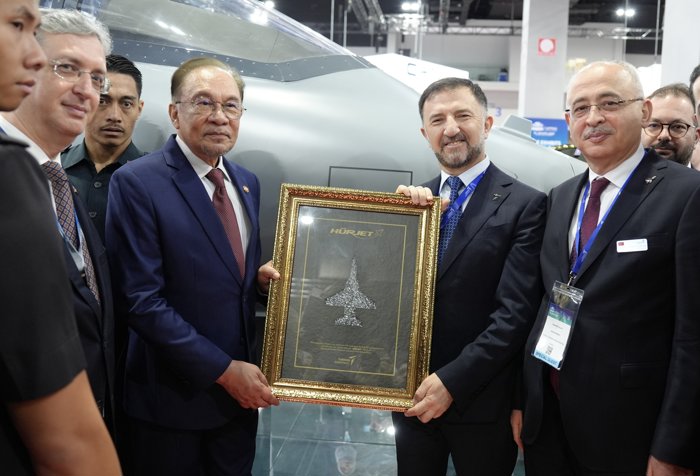 TUSAŞ, Malezya'nın başkenti Kuala Lumpur'da düzenlenen Defence Services Asia (DSA) 2026 Fuarı'nda ürün ve kabiliyetlerinden örnekler sergiliyor. Malezya Başbakanı Enver İbrahim, fuar kapsamında TUSAŞ standını ziyaret ederek, sergilenen jet eğitim uçağı HÜRJET'in birebir ölçülerdeki maketini imzaladı.