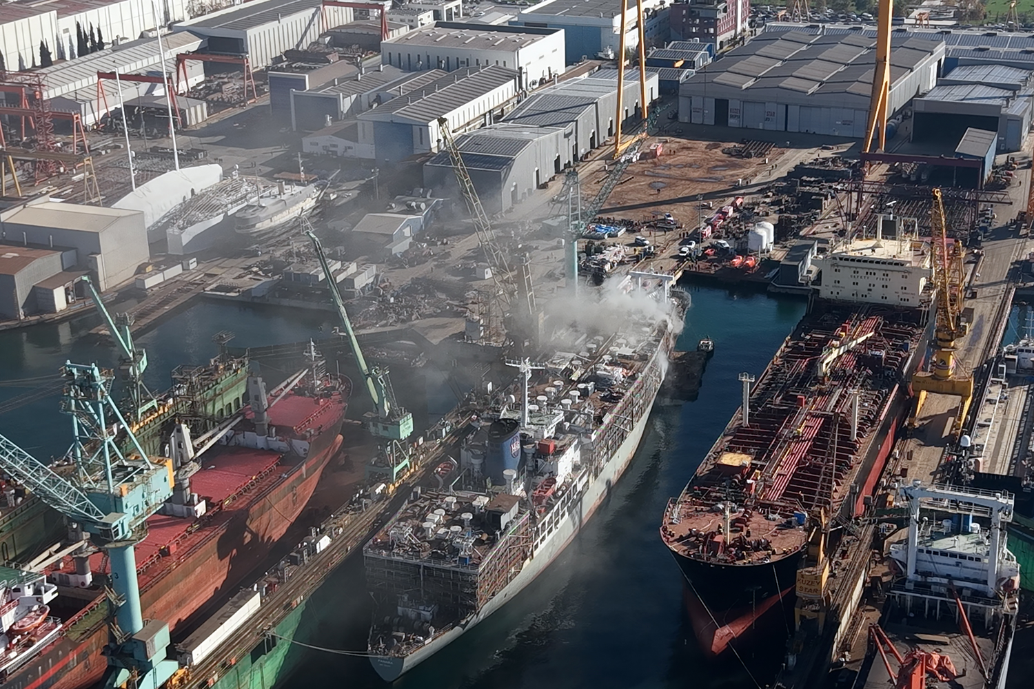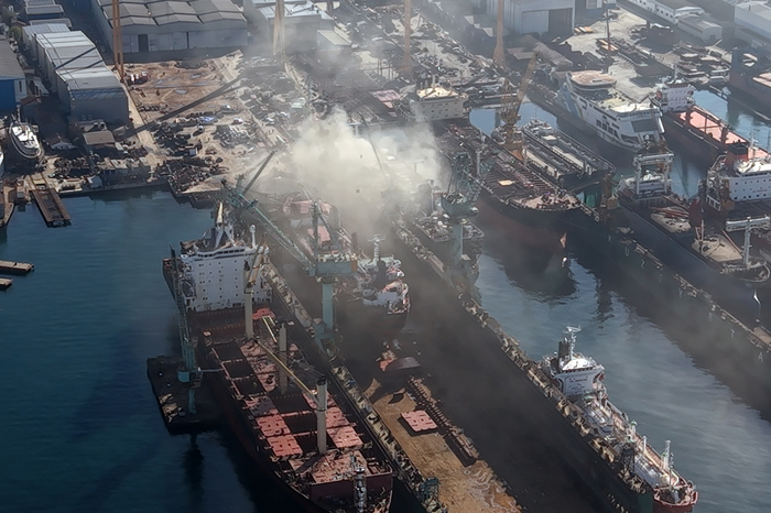Tersaneler Caddesi'nde bulunan bir tersanedeki Panama bandıralı canlı hayvan taşımacılığı yapılan "Zein 1" isimli 163 metre uzunluğundaki geminin ambar bölümünde, henüz belirlenemeyen nedenle yangın çıktı.