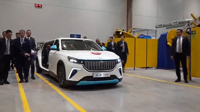 İlk defa görüntülenen araç dikkat çekti. Öte yandan Cumhurbaşkanı Erdoğan'ın törene geldiği yeni versiyon Togg'un içinde bakanlarda yer aldı.